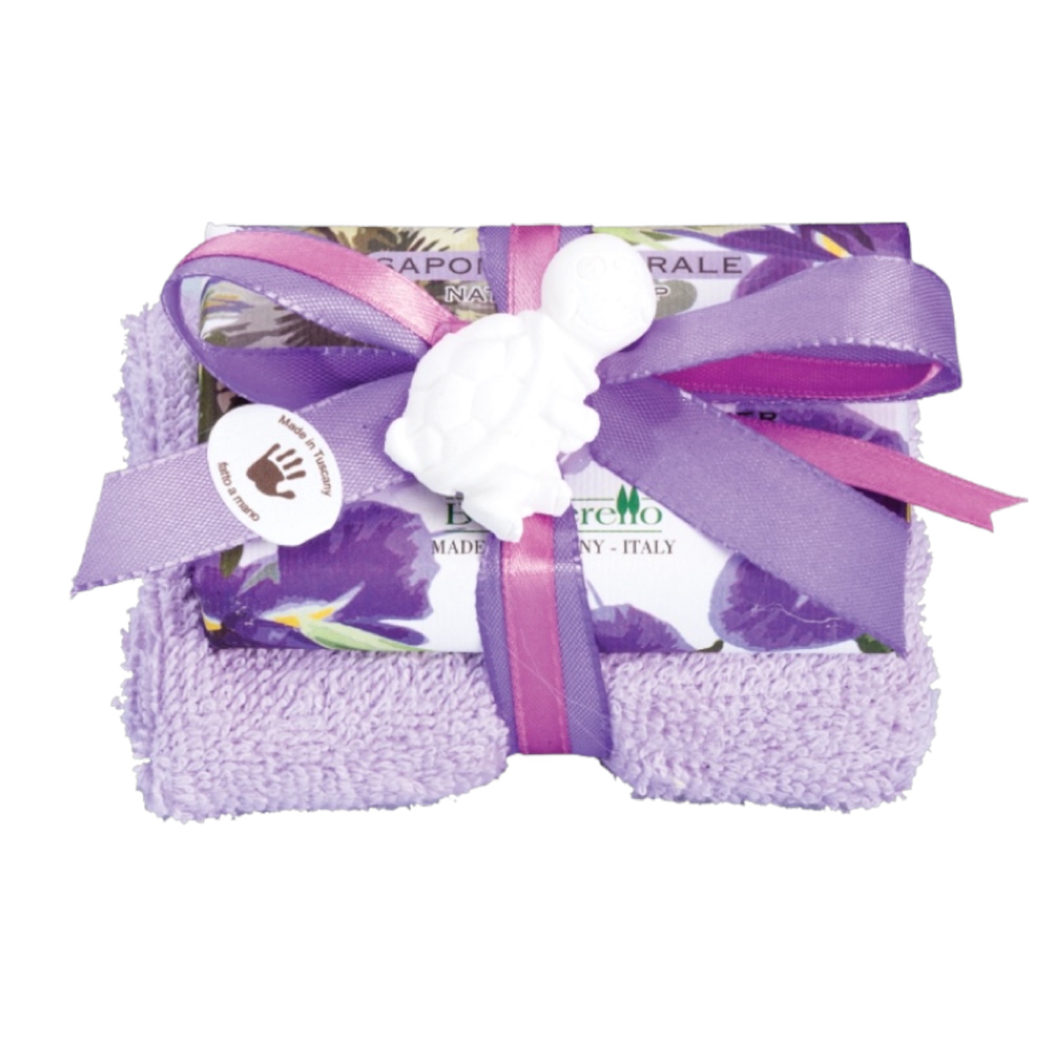 Indulge in the delicate fragrance of the Bolgherello Passion Flower and Iris Soap and Hand Towel Set. The soap combines the exotic scent of passion flower with the elegance of iris, gently cleansing and hydrating your skin. Paired with a soft hand towel, this set adds luxurious charm to any bathroom.