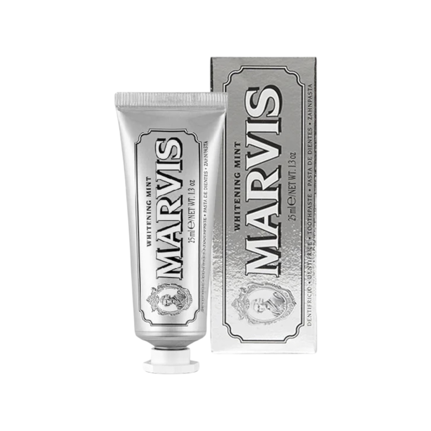 A sharp taste of cool mint for a pleasant and lasting freshness, actively whitens teeth for a brighter smile. The Marvis formula helps prevent tooth decay, tartar and plaque while keeping your breath fresh all day.