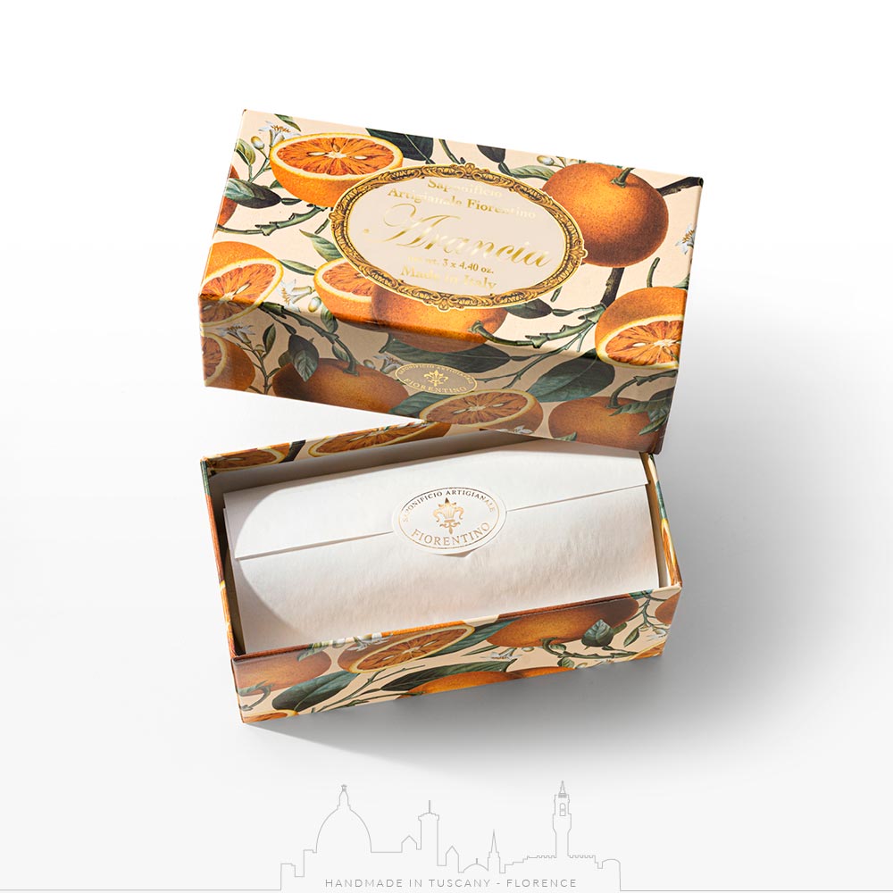 Feel uplifted with the citrus scent of orange. These soaps are perfect for guests. Saponificio Artigianale Fiorentino soaps are made of high-quality natural ingredients and fragrances.
